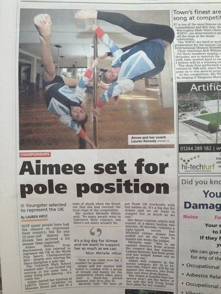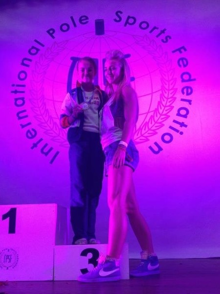 Our brightest star junior, student Aimee Hilton (age 12 at the time) qualified to compete in the World Pole Sports Championships in London in July 2013 and 2014. She placed 3rd in her category both years! Aimee was a dedicated student who trained up to four times a week.